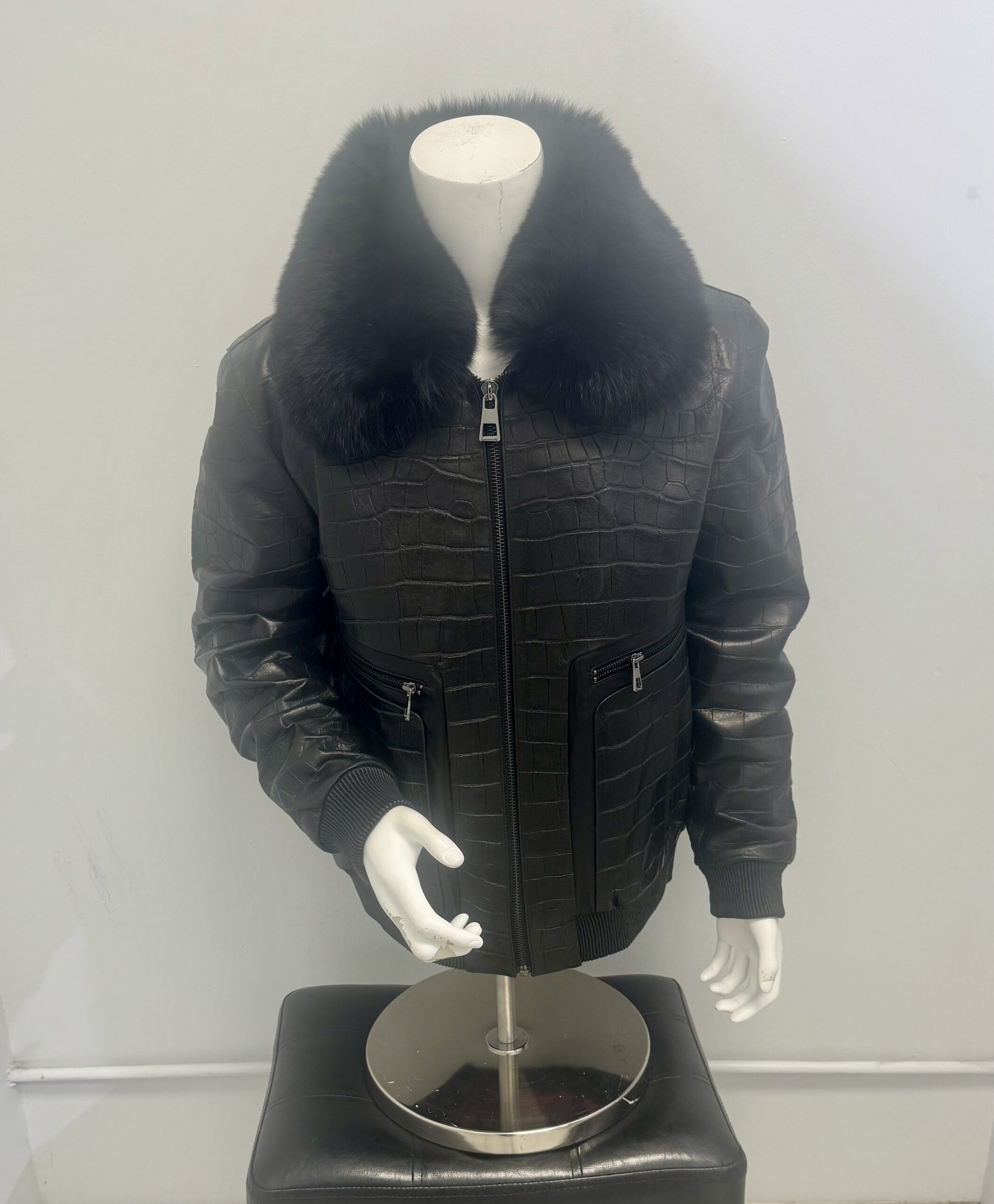 Alligator Print Lambskin Leather w/Fox Collar